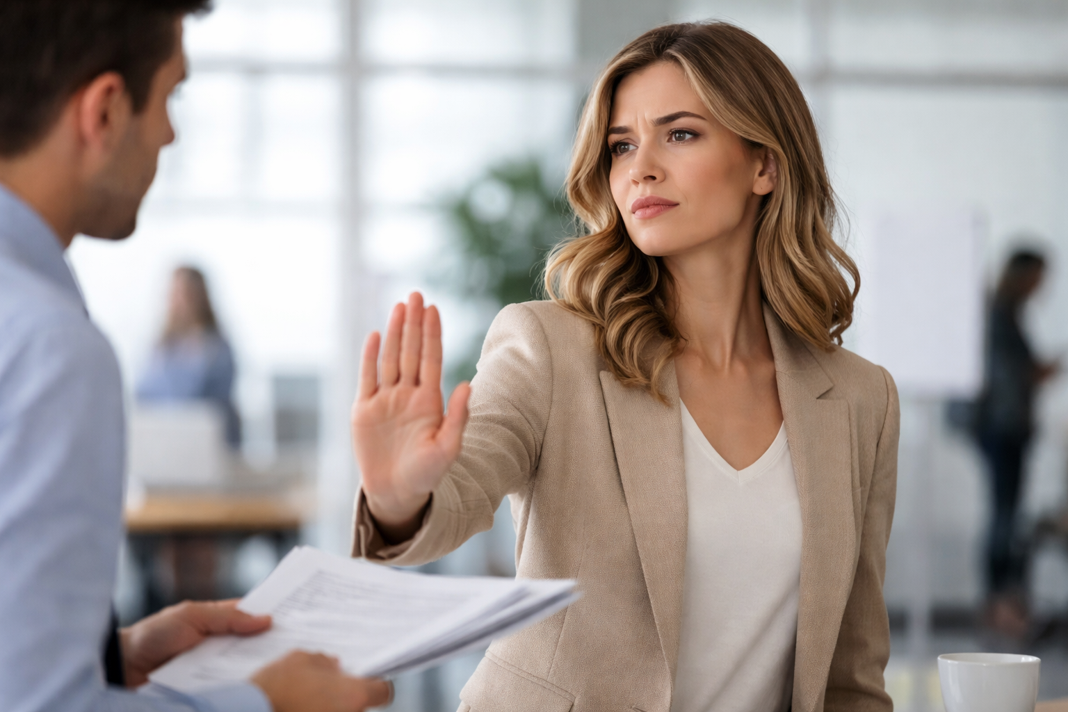Een tweede vorm die ik regelmatig tegenkom is dat degene die ‘nee’ zegt er een verwijt aan toevoegt. De ‘nee’ krijgt dan een verontwaardigd staartje, hoe durf je me dit te vragen! Zo legde iemand die van zichzelf vond dat hij goed was in ‘nee’ zeggen eens uit dat hij de verzoeker haarfijn uit de doeken had gedaan wat er mis was met diens verzoek. ‘Je probeert nu al voor de derde keer je werk op mij af te schuiven en daar trap ik mooi niet in!’ Ook deze persoon vond het helemaal niet moeilijk om ‘nee’ te zeggen, en hij nam de schade die zijn weigeringen toebrachten aan relaties op de koop toe.